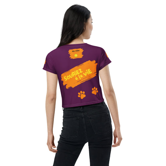 T-shirt Crop-Top lenox Souriez à la vie fond aubergine