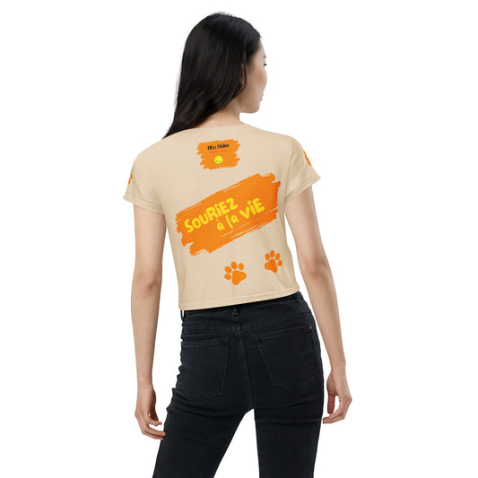 Avec Souriez à la Vie, portez un crop top qui vous ressemble et projetez autour de vous une attitude de confiance et de joie. Incarnez le message, vibrez avec style !