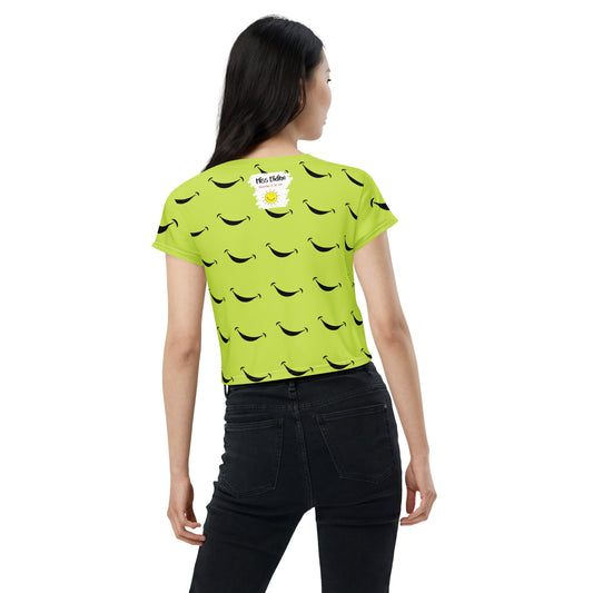 T-shirt Crop-Top "Grenouilles amusantes" Souriez à la vie fond vert anis