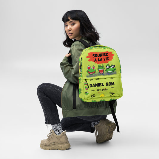 Sac à dos personnalisable " 3 grenouilles amusantes" Souriez à la vie